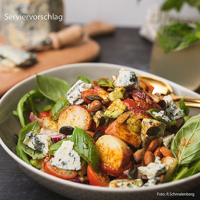 ZUTATEN / PRODUKTINFO: Weichkäse mit Blauschimmel und Sommertrüffel. Zutaten: MILCH, Meersalz, Lab, 1 % Sommertrüffel, Starterkulturen, Penicillium roqueforti. Rinde nicht zum Verzehr geeignet. Gekühlt lagern. IT;01 62;CE