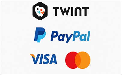 Scegliete l'opzione giusta per voi tra i vari metodi di pagamento. Pagate rapidamente con TWINT o PayPal, utilizzate la vostra carta di credito o, in qualità di clienti aziendali, approfittate del nostro pratico sistema di acquisto su conto corrente.