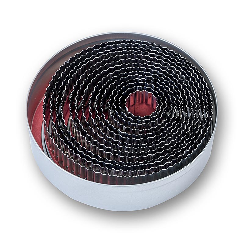 Set di tagliabiscotti in latta, tondi, rigati, ø 2,2 -11 cm, altezza 3 cm, 14 pezzi.