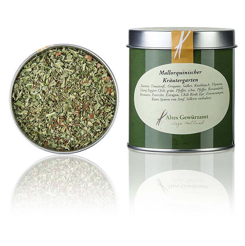 ZUTATEN / PRODUKTINFO: Gewürzmischung. Zutaten: Tomatenflocken, Oregano, Salbei, Knoblauch, Thymian, Paprikagranulat, Pfeffer grün, Pfeffer schwarz, Koriander, Rosmarin, Petersilie, Estragon, Chili Bird Eye, Zitronenmyrte.Eigenschaften: Es müssen keine Nährwerte angegeben werden.