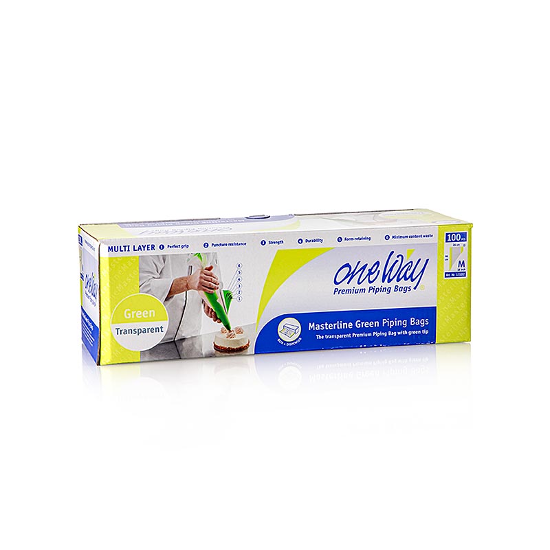 I sacchetti One Way hanno 4 strati (gomma morbida al tatto all'esterno) - possono essere separati senza danni - sono molto facili da usare - non scoppiano - hanno una cucitura rinforzata - sono disponibili in diverse dimensioni - per massa fredda e panna montata