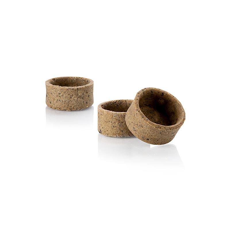 ZUTATEN / PRODUKTINFO: Glutenfreie Dessert-Tartelettes, vegan. Zutaten: Buchweizenmehl (22,56%), Reismehl, SOJA-Saft (SOJA-Saft (Wasser, SOJABOHNEN), Zucker, pflanzliches Fett, Mineralien (Kalzium, Eisen), Vitamine (A, D, E, B1, B2, B6, B12), Salz, Stabilisator (E407)), Zucker, SOJA-Bohnenöl, schwarzer SESAM, Maniokmehl, Salz. Bei maximal +18°C lagern.