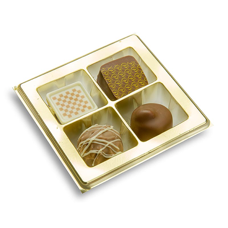ZUTATEN / PRODUKTINFO: Pralinen mit Vollmilch-Schokolade, Kakao: 35% mindestens. Zutaten: Zucker, HASELNUSSKERNE, Kakaobutter, VOLLMILCHPULVER, Kakaomasse, WEIZENMEHL, PISTAZIEN, Emulgator: Lecithine (Sonnenblumen, SOJA); natürliches Vanille-Aroma, MAGERMILCHPULVER, BUTTERREINFETT, SAHNEPULVER, Karamellsirup, Kakaopulver, Glukosesirup, Salz. Kühl und trocken lagern! Empfohlene Lagertemperatur: 16°C bis 18°C.Eigenschaften: .